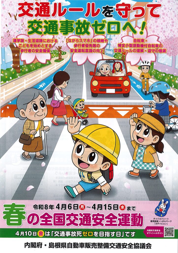この時期は通学、通勤で交通量が増え、交通事故への注意がより大切になります!