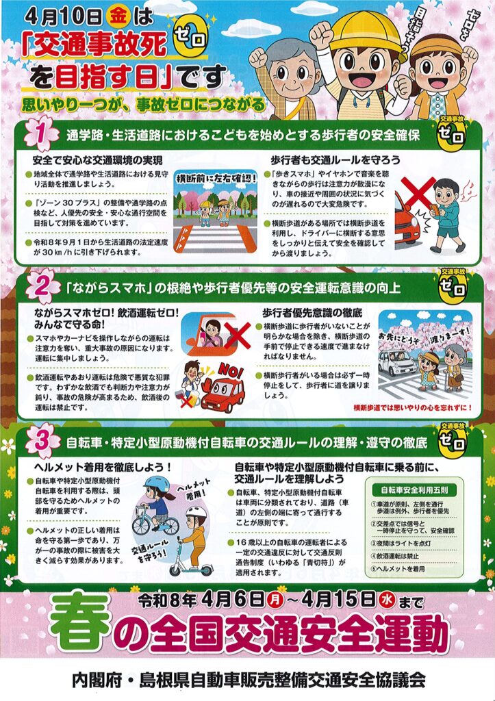 4/10(金)は「交通事故死ゼロを目指す日」です